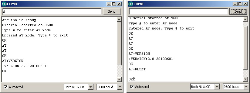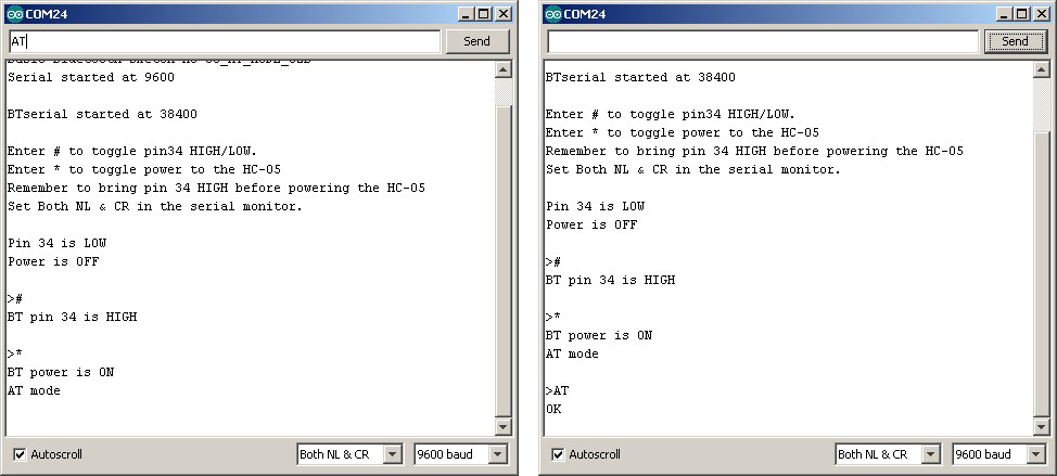 Commands to the HC-05 from the Arduino IDE Serial Monitor while the